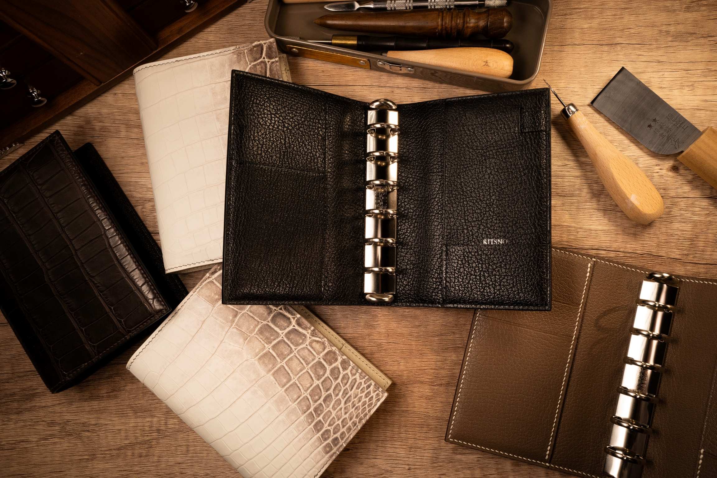 デザイナーである友利は、大学院在学中に銀座のajina革工房で革細工の技術を修練し、その審美眼と技術を基礎に「本当に欲しいものを自ら作りたい」との想いでRITSNOは誕生しました。