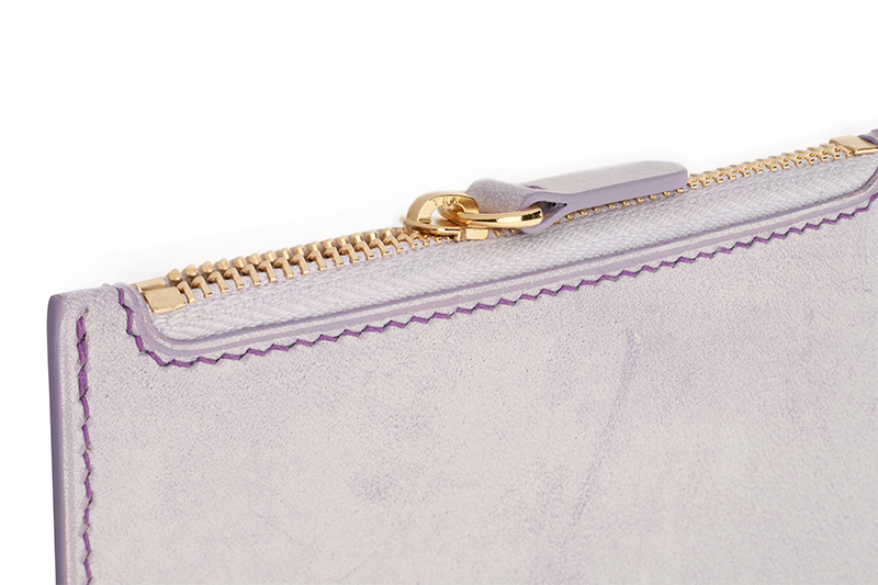 クロム加工を施したゴート革は柔らかく、内側のスエード調の超微細繊維によりソフトな触感を実現しています。