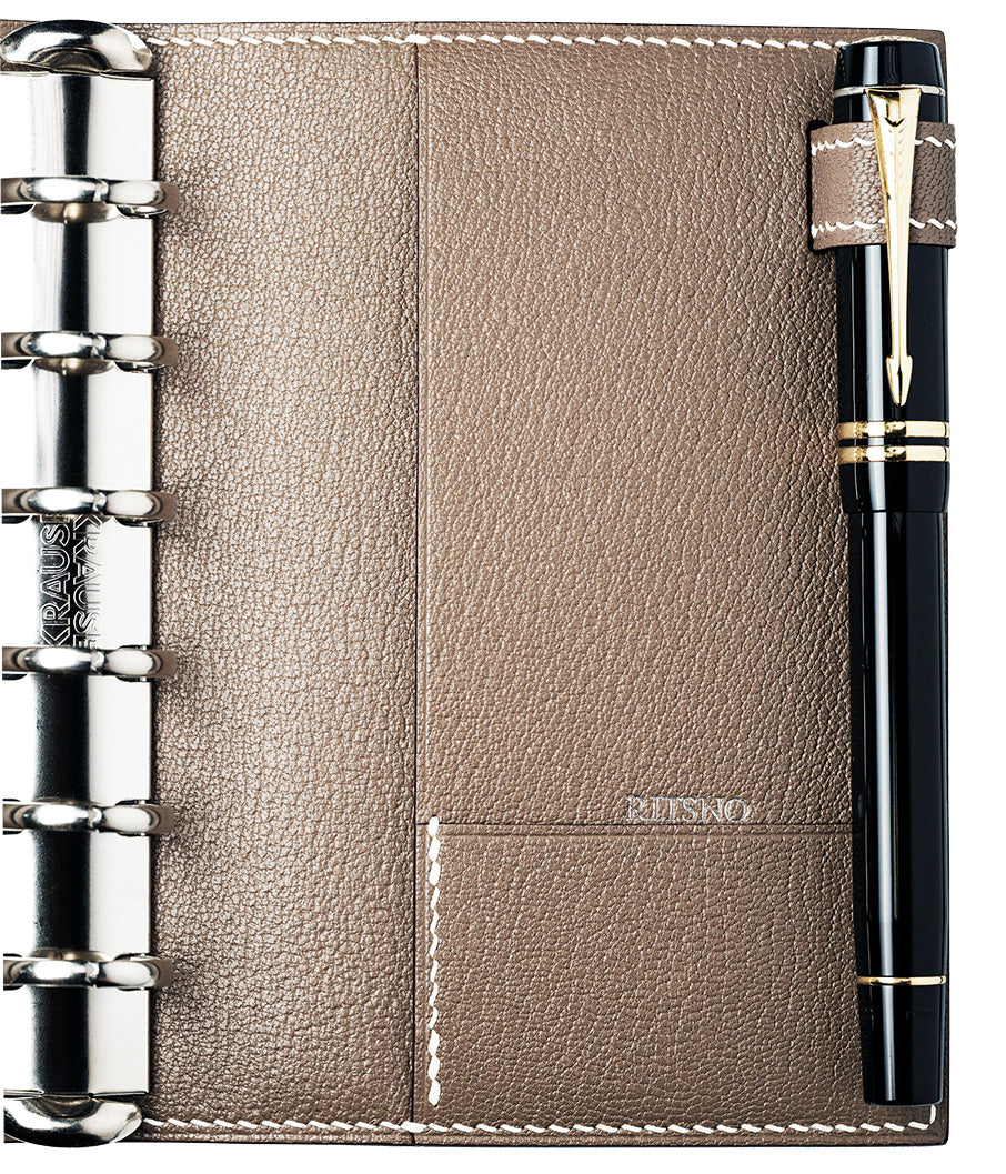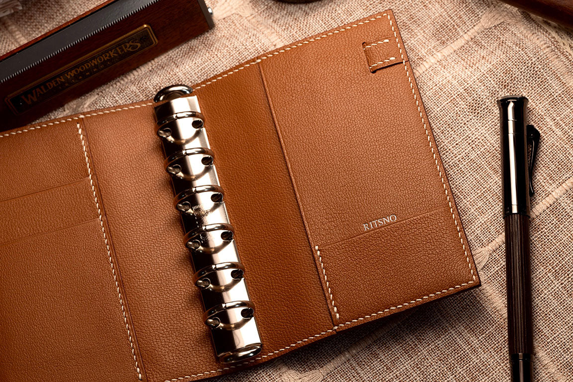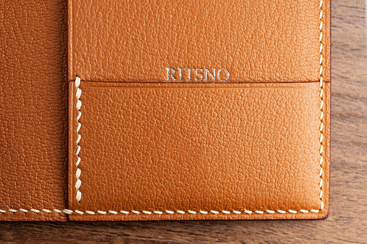 RITSNO は初めてバックの製造技術を手帳に取り入れ、硬く型崩れしにくい一方で、柔軟性と弾力性を兼ね備えた多層構造の手帳を作りました。